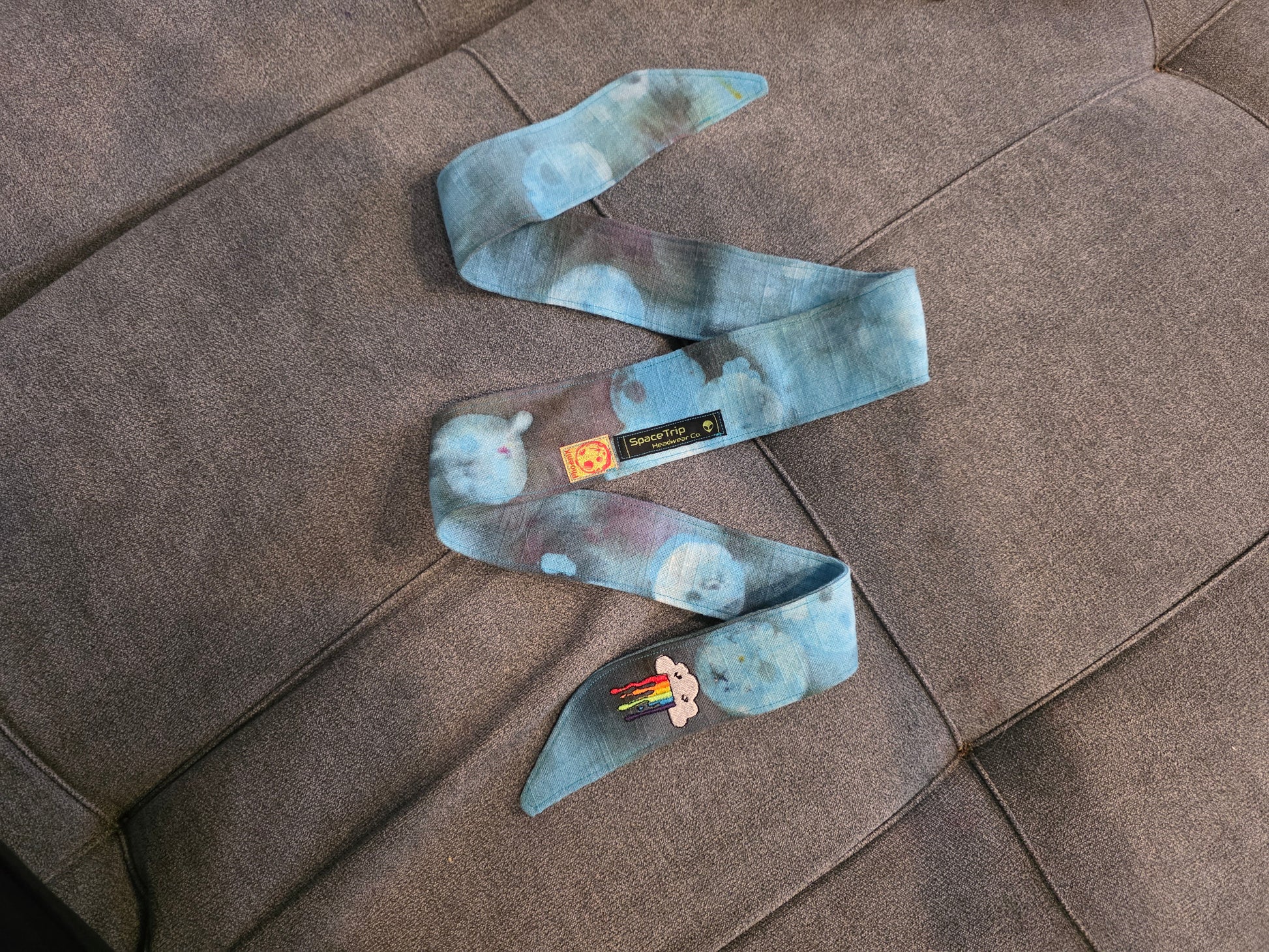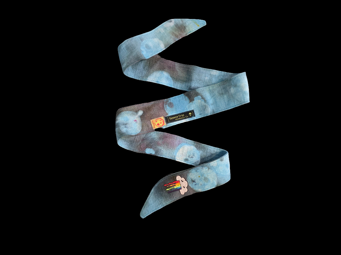 Born from the collision of two legends โ SpaceTrip Headwear Co. and Phoenix โ Hikaru Moon is a rare celestial relic, hand-dyed in soft, glowing blues with faint cosmic purples and ghostly lunar shadows. Its emotional centerpiece? The crying rainbow cloud patch โ a tender nod to the beauty found in every breakdown.