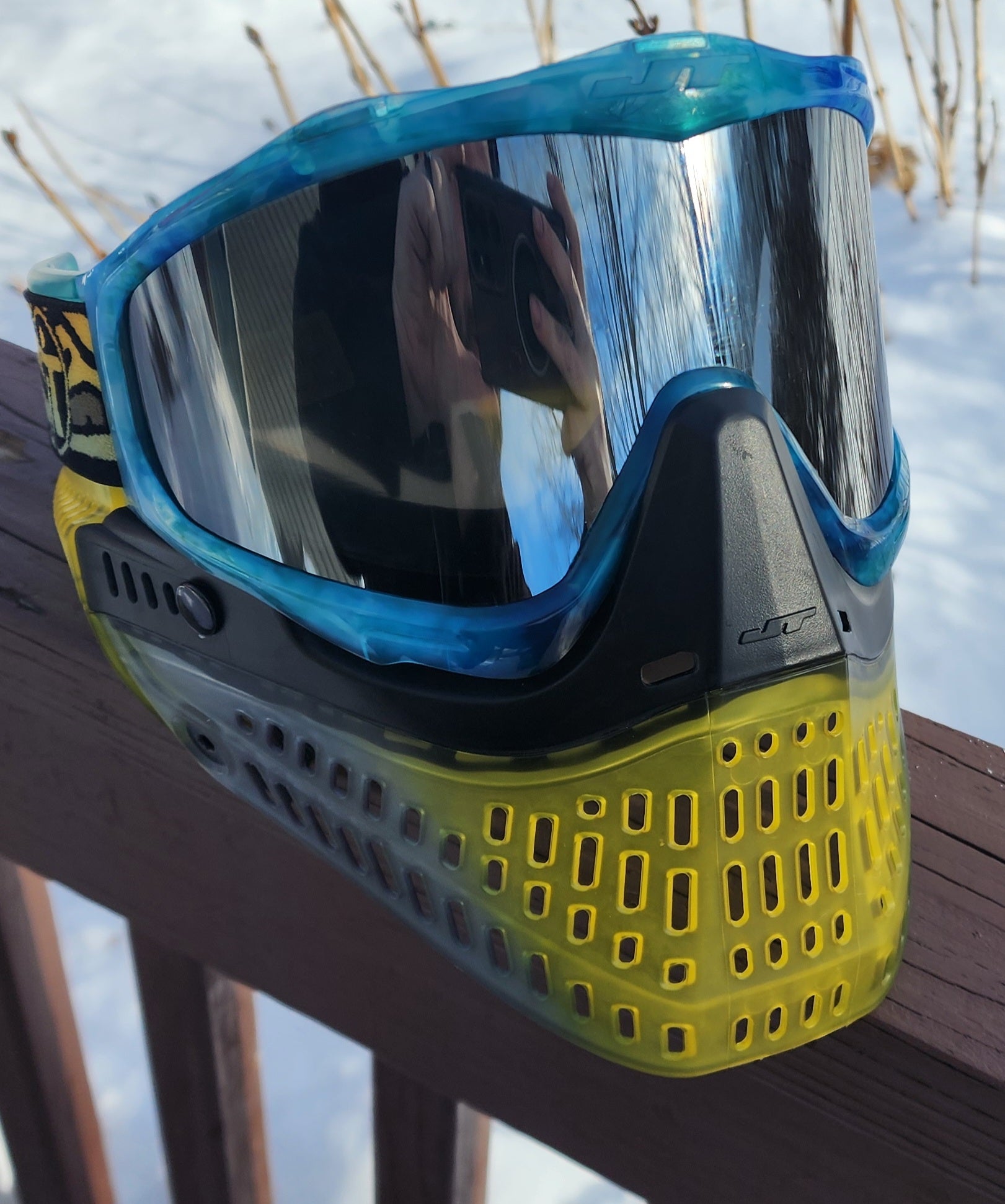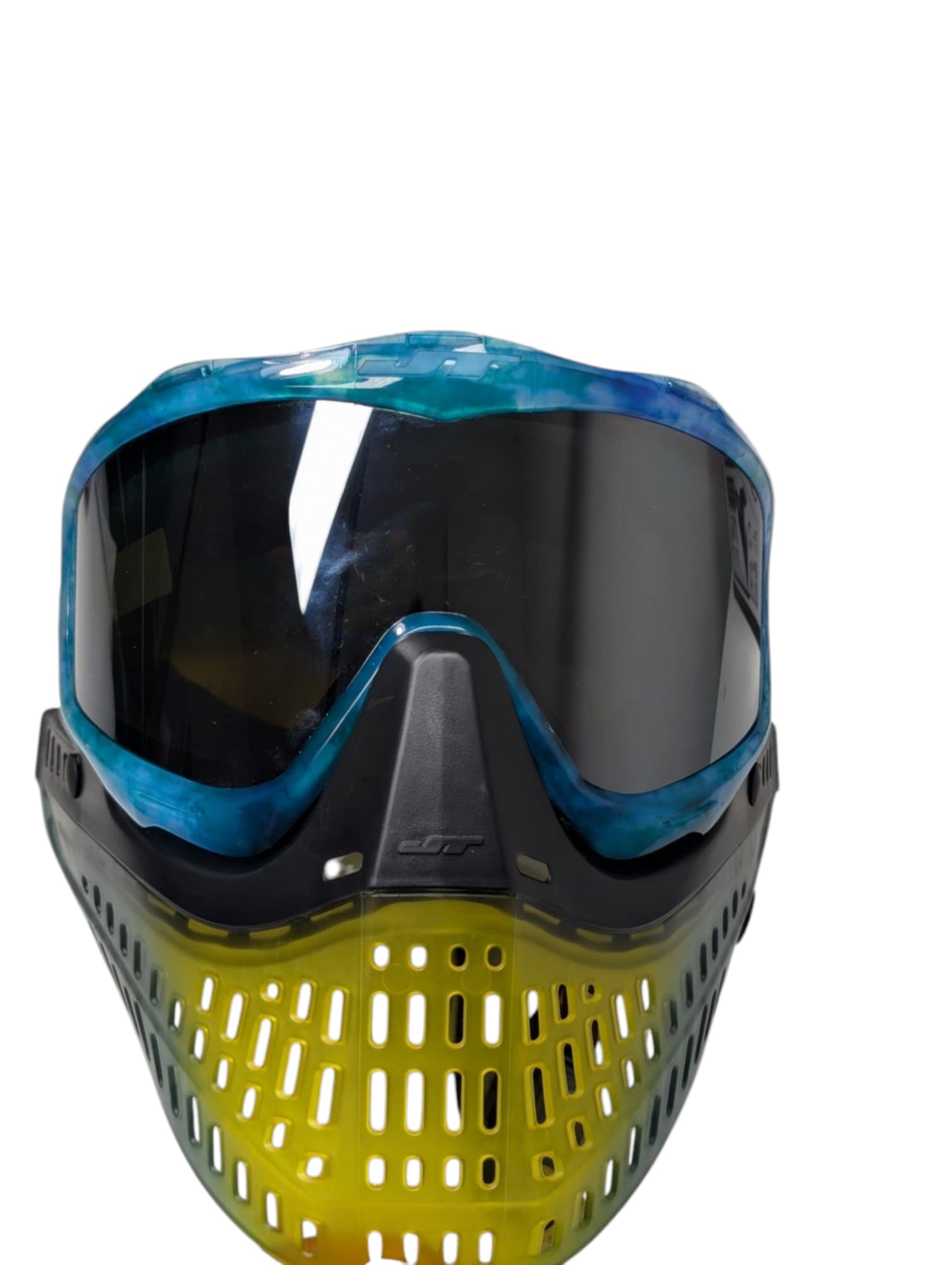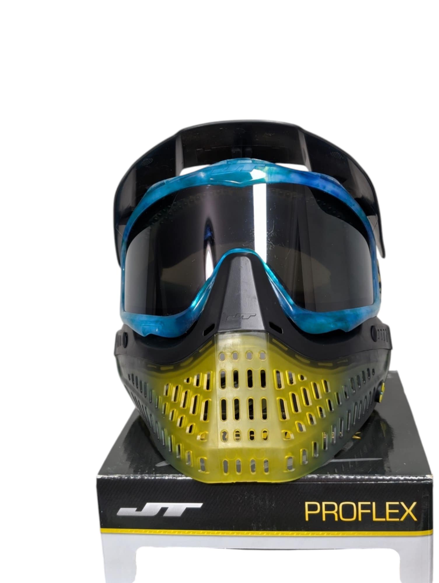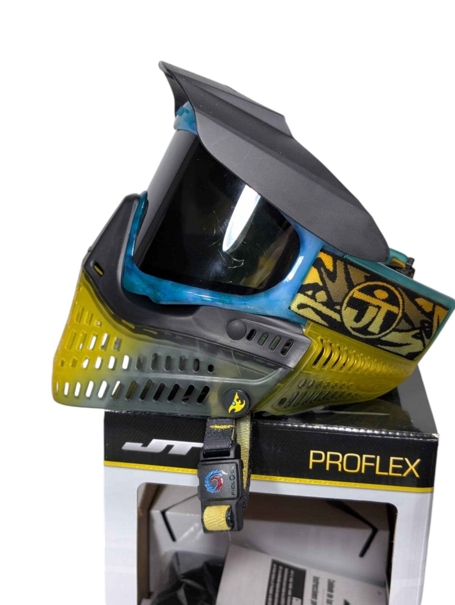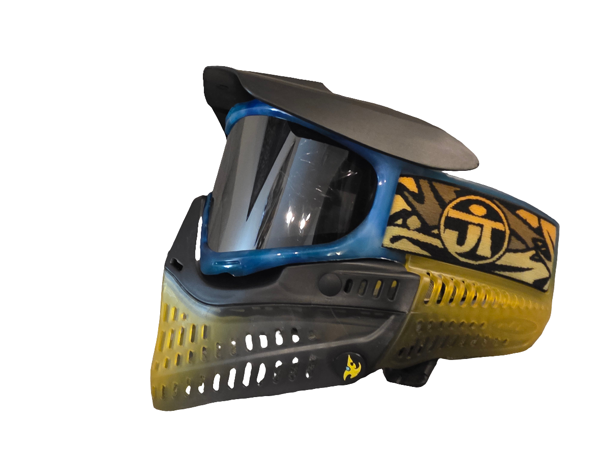 Built for warriors who grind the tech tree and snap lanes like pylons, this custom JT Proflex setup is a forged alliance of legacy and warp-charged style. The faceplate fades from Protoss gold into stealthy matte black like a Zealot charging into the shadows, while the frame pops with ethereal blue core energy, matched by reflective chrome lens optics that see through cloak and cowardice alike.